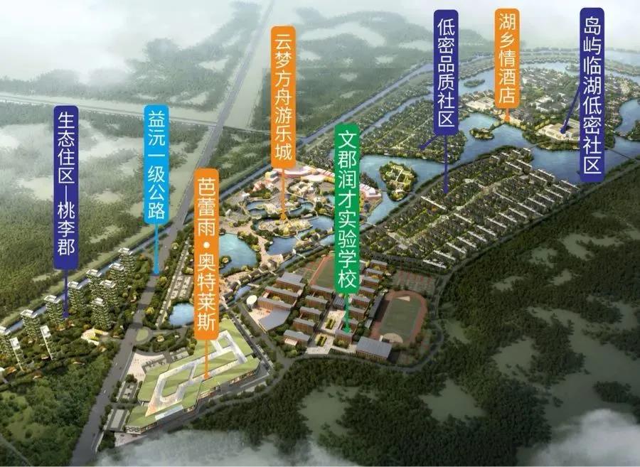 The project of Yunmeng Ark Industrial New City covers a total area of about 2500 mu, with a total construction area of about 800,000 square meters. The new plan is to fully respect the original natural landscape texture, and fully follow the design concept that lucid waters and lush mountains are invaluable assets, and form five functional blocks, namely, health and science and education group, health and vacation group, cultural tourism and leisure group, characteristic business group, and livable waterfront group under the original functional planning of the resort, and arrange vertically from south to north in a group style, including business and trade services, entertainment and leisure, scientific and technological innovation education, ecological living, tourism and vacation, life services, cultural creativity, health preservation, sightseeing and other supporting facilities, so as to build the whole industrial chain of healthy town. Relying on the profound historical and cultural heritage of Yiyang, Yunmeng Ark International Health Resort injects characteristic cultural genes, takes tourism vacation and spa health as the core, integrates commerce, education, entertainment, health, sports and residence, to create a poetic international cultural tourism and health resort.