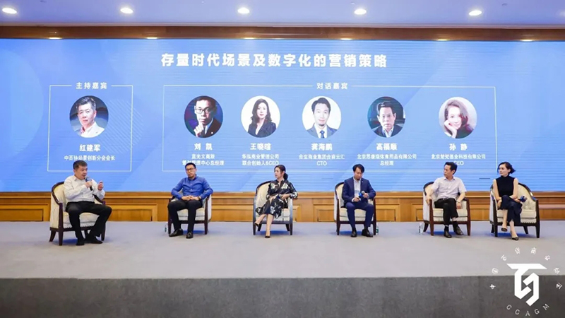 中百協(xié)場(chǎng)景創(chuàng)新分會(huì)會(huì)長(zhǎng)紅建軍主持對(duì)話(huà),對(duì)話(huà)題目為“存量時(shí)代場(chǎng)景及數(shù)字化的營(yíng)銷(xiāo)策略”,藍(lán)光文商旅策劃管理中心總經(jīng)理劉凱 、華泓商業(yè)管理公司聯(lián)合創(chuàng)始人&CEO王曉暄、合生商業(yè)集團(tuán)合商云匯CTO龔海鵬、北京思康瑞體育用品有限公司總經(jīng)理高福順、北京楚梵基業(yè)科技有限公司CEO孫靜作為嘉賓參加分享。