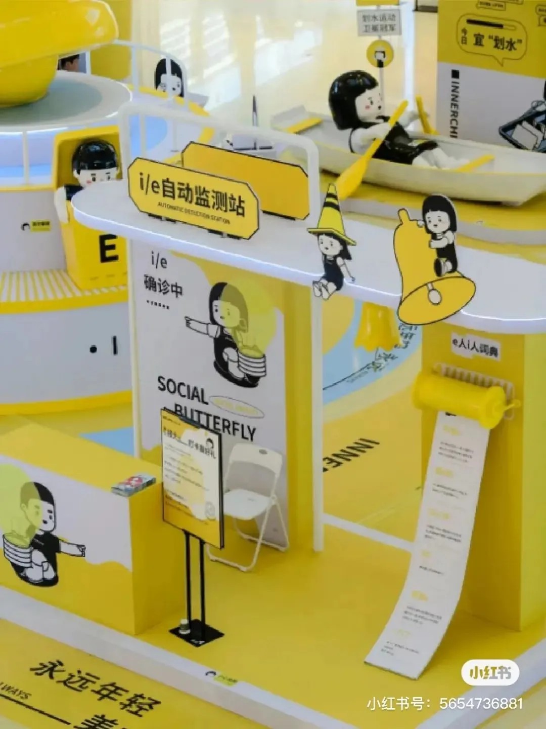 為了深化這一體驗(yàn),商場(chǎng)精心布局了一系列互動(dòng)場(chǎng)景,如“i人e人自動(dòng)檢測(cè)站”、“i人e人詞典”等,這些場(chǎng)景不僅是對(duì)社交密碼的趣味解構(gòu),更是對(duì)年輕人性格特質(zhì)的深刻洞察。從安靜的“交個(gè)朋友bar”到活躍的“劃水運(yùn)動(dòng)”,再到個(gè)性鮮明的“辣妹接頭點(diǎn)”,每個(gè)角落都鼓勵(lì)著年輕人以最真實(shí)的自我參與其中,享受互動(dòng)帶來(lái)的樂(lè)趣與共鳴。