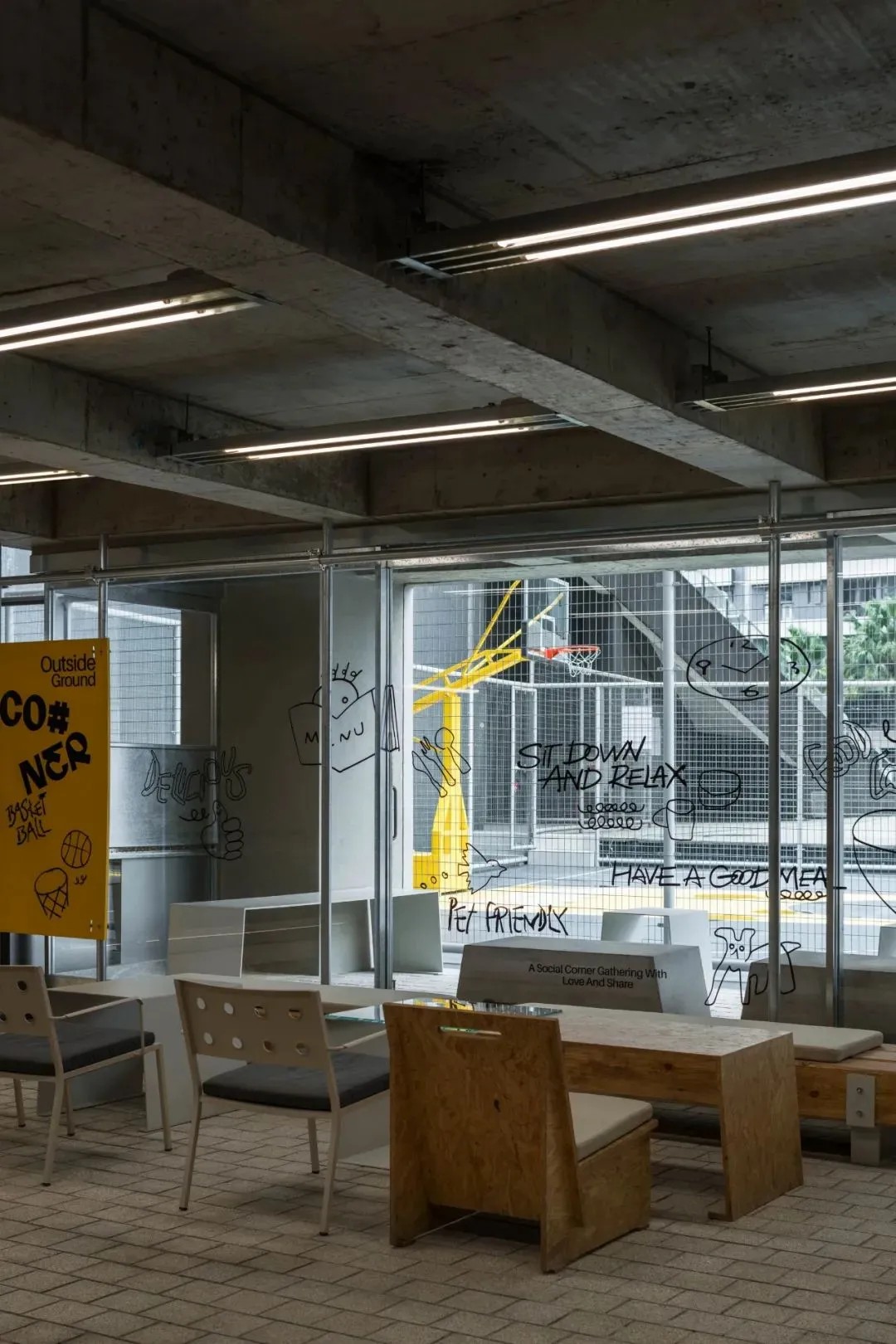 CO#NER食堂,以禁欲系冷淡風(fēng)為主旋律,設(shè)計(jì)上承襲了極致輕工業(yè)的時(shí)尚美學(xué),細(xì)膩而不失格調(diào)。其獨(dú)特的售賣(mài)模式圍繞模塊化“檔口”展開(kāi),融合POP UP快閃店概念,營(yíng)造出既持續(xù)又多變的用餐氛圍,旨在為顧客解鎖無(wú)限可能的美食探索之旅??臻g內(nèi),水泥原色與暖木色家具巧妙碰撞,輔以生動(dòng)活潑的簡(jiǎn)筆插畫(huà),色彩斑斕間傳遞出溫馨舒適的放松信號(hào),讓人在享受美食的同時(shí),也能感受到心靈的慰藉。