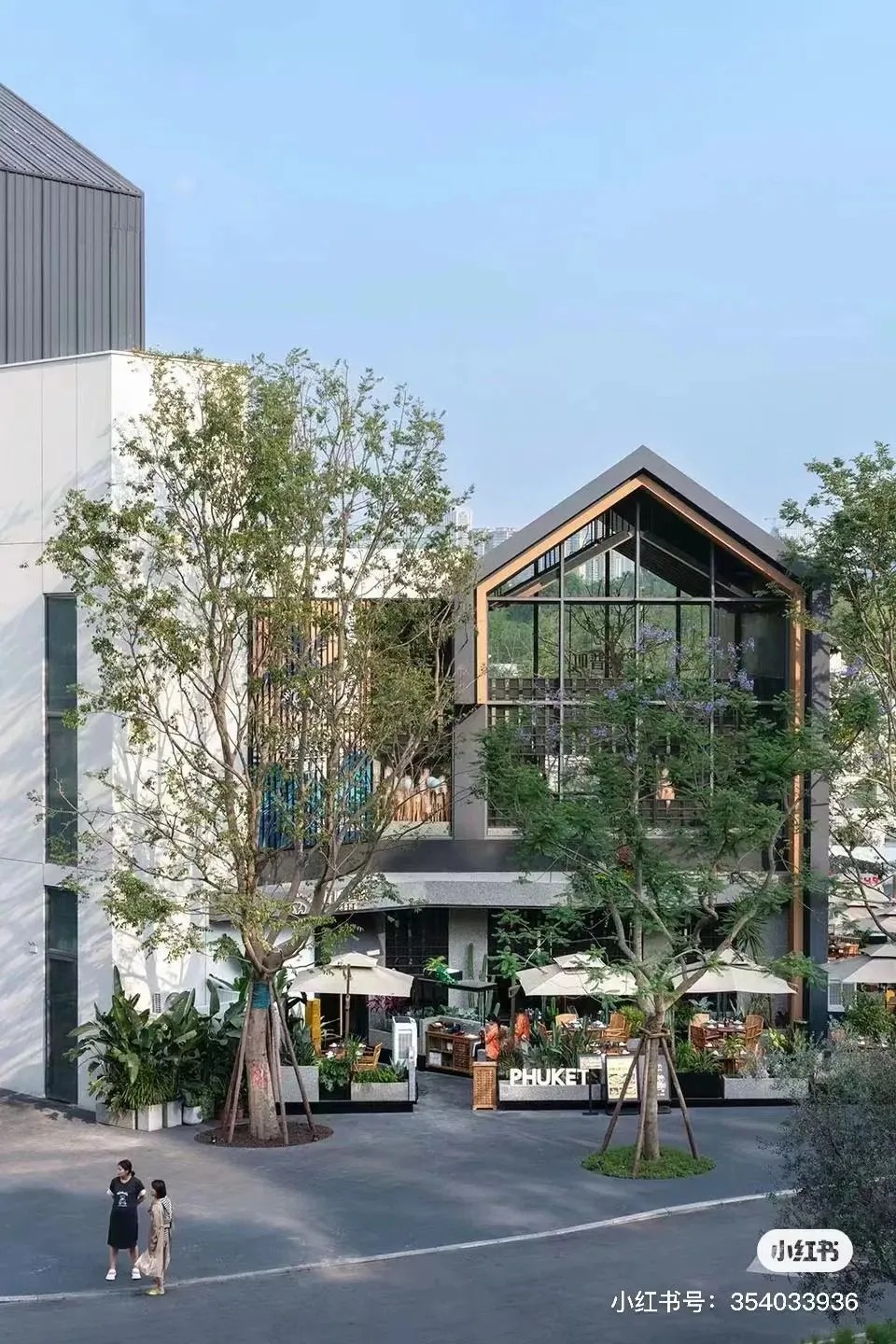 街道旁的建筑采用了大面積落地窗設(shè)計(jì),讓室外的綠意與光線(xiàn)無(wú)縫融入室內(nèi)空間,營(yíng)造出一種開(kāi)闊而明亮的氛圍,使人心曠神怡,毫無(wú)拘束之感。
