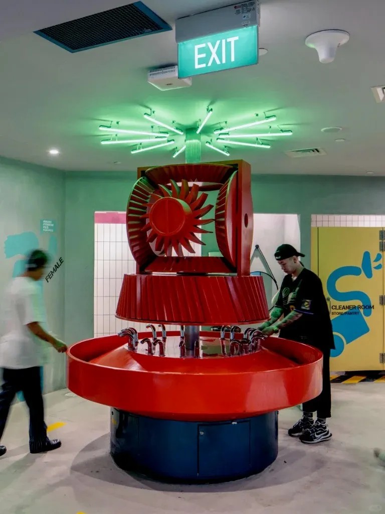 新加坡GRiD項(xiàng)目位于實(shí)利基藝術(shù)區(qū),經(jīng)設(shè)計(jì)改造,將普通街角轉(zhuǎn)變?yōu)榛盍λ囊绲膭?chuàng)意社交中心。其立面改造尤為亮眼,通過(guò)重新設(shè)計(jì)建筑轉(zhuǎn)角,運(yùn)用工業(yè)風(fēng)材料與肌理,彰顯朋克搖滾精神與自由表達(dá)風(fēng)格,成為引人注目的視覺(jué)焦點(diǎn)與地標(biāo)。