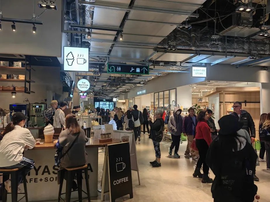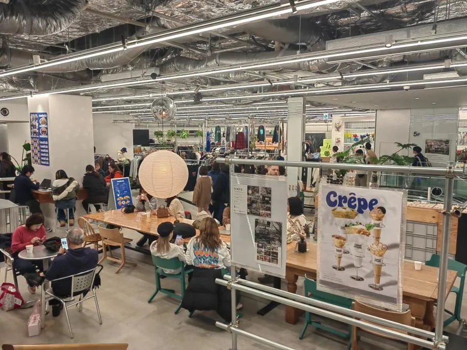 在東京的一座Tokyu Plaza中,就見(jiàn)到其舍棄半層經(jīng)營(yíng)面積,打造出公共休閑空間。當(dāng)然,所謂“舍棄”也并非完全屏蔽零售商品售賣(mài),只是有取舍地將更能豐富消費(fèi)者游逛體驗(yàn)的特定零售品類(lèi)包羅其中。這些商品或品牌的陳列更像是美陳道具,沒(méi)有出跳的展柜與收銀臺(tái),總能讓進(jìn)場(chǎng)顧客在不經(jīng)意間隨手拿起挑選。